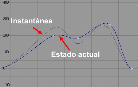 Las curvas a las que se le realice la Instantánea, serán mostradas en un color gris oscuro y no afectarán a la animación a menos que sea activada vía el comando Intercambiar Instantánea (pasando a desactivar la curva actual).