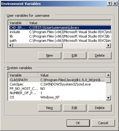 Las Variables de Entorno pueden definirse de las siguientes maneras, ejem., zu hacer accesibles directorios específicos para varios usuarios o versiones de Cinema 4D.