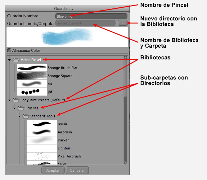 Guarda los parámetros actuales del Pincel a una Biblioteca de Pinceles. Aparecerá la siguiente ventana: