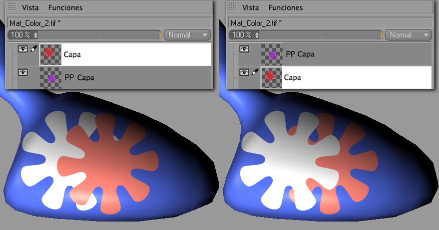 Si ahora seleccionas Guardar Textura (in formato Photoshop .psd) las capas temporales se guardaran con el fichero .psd (con la resolución definida en la ventana de diálogo ) y el fichero puede abrirse y editarse en Photoshop.
