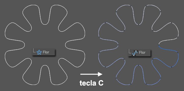 Una spline está hecha de varias curvas parciales, o segmentos. Por ejemplo, si creas texto, observarás que se crea un único objeto, incluso si has escrito varias letras. El objeto texto está constituido por varios contornos — un contorno o más por letra.