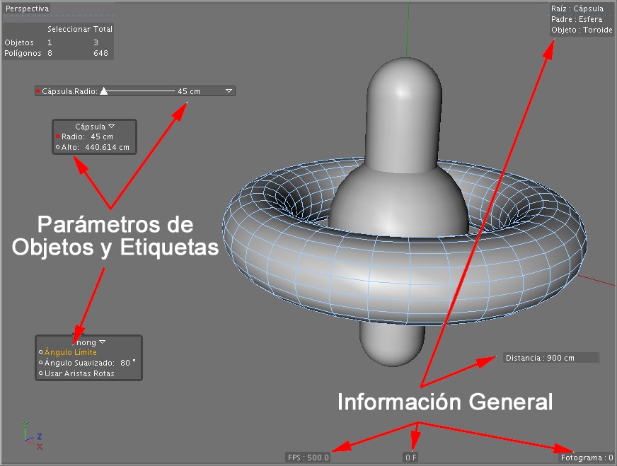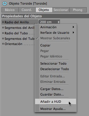 El HUD realiza una función similar en Cinema 4D, mostrando parámetros directamente en la vista, donde además puedes editarlos o animarlos.