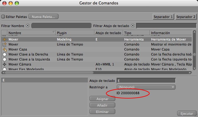 Comando: Cuando se hace click en este asistente de selección, puede ejecutarse un comando de Cinema 4D (o script) de tu elección en adición al elemento seleccionado. Mira el Gestor Personalizar Comandos para ver los IDs de los comandos disponibles (introduce el número de ID en el campo ID):