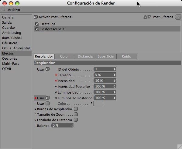 Usa esta sección para controlar los post efectos que se renderizarán.