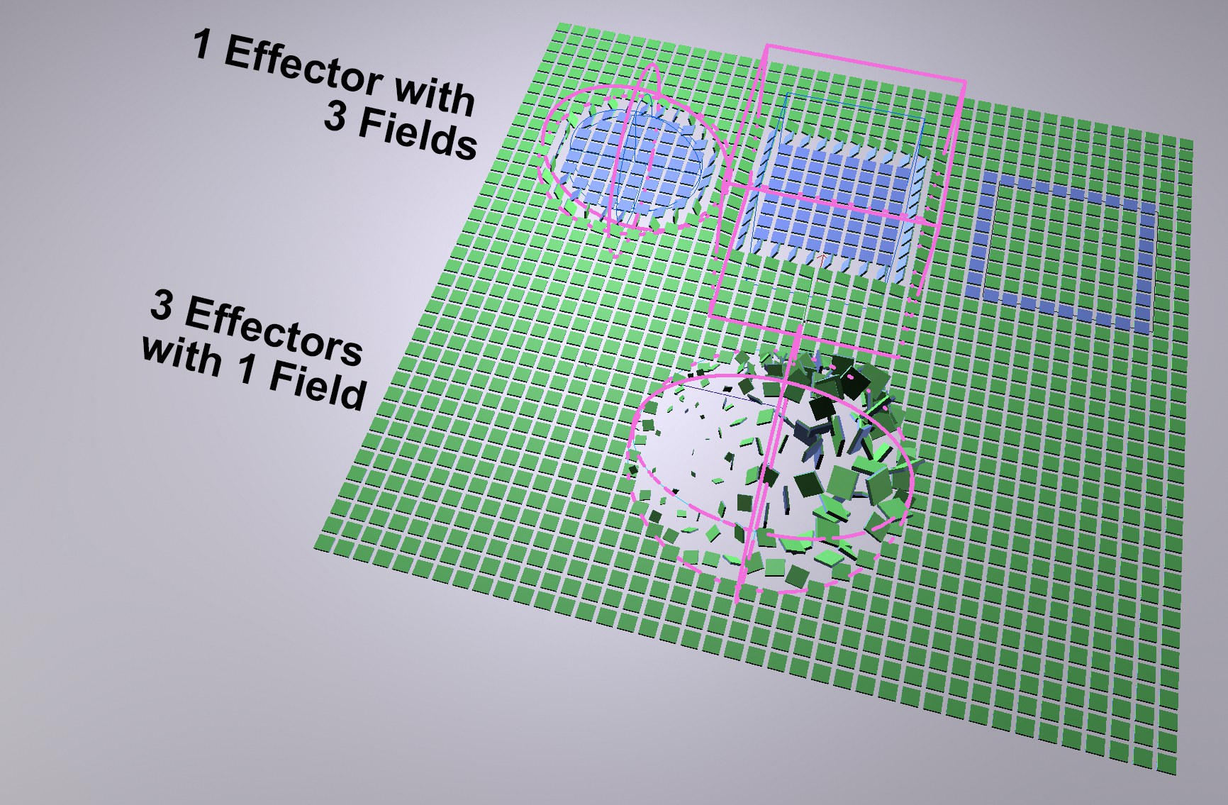 Básicamente, es más fácil de entender que se trabaja con campos y efectores simples que con campos y efectores antiguos (por ejemplo, efecto aleatorio con un campo aleatorio), aunque esas combinaciones también funcionarán.