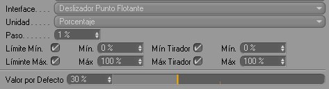 El Deslizador Punto Flotante es probablemente el Parámetro de Datos de Usuario más usado. Se usa para definr valores numéricos (opcionalmente con situaciones posteriores al punto decimal).