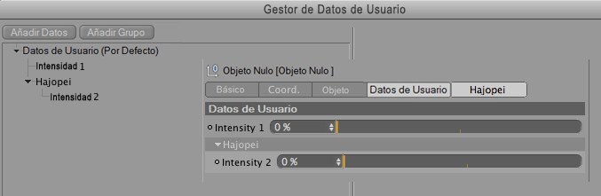 Añade un elemento Grupo de Datos, al cual podrás subordinar parámetros que se añadirán al grupo. Este grupo puede abrirse y cerrarse en el Gestor de Atributos: