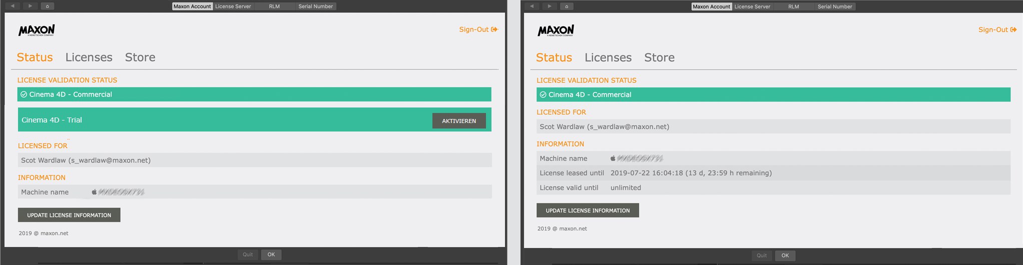El RLM juega un papel especial: sus licencias no se obtienen a través de la cuenta de usuario de Maxon, sino directamente de Maxon.
