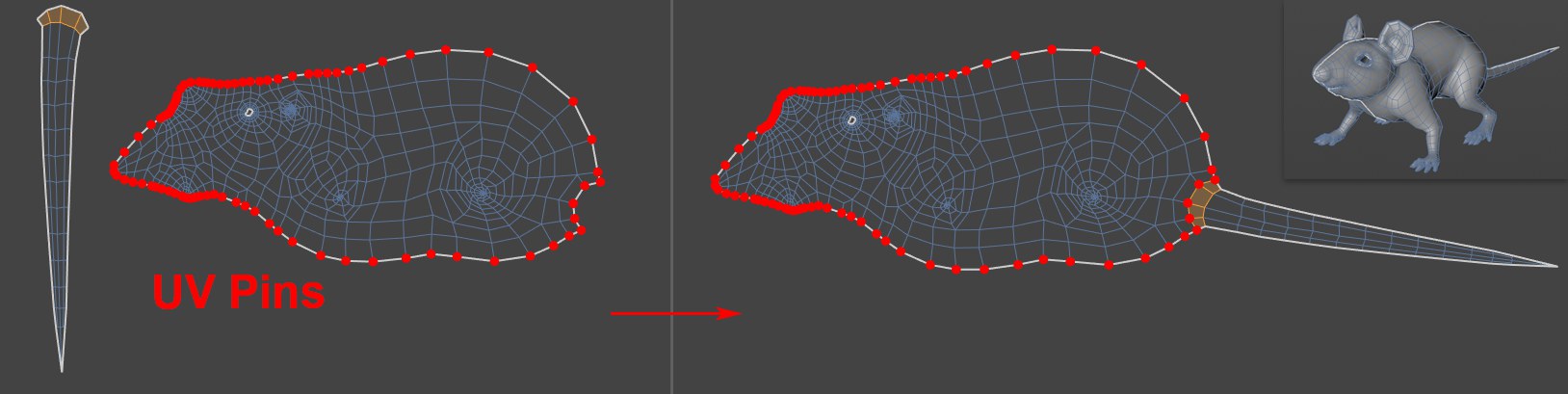 Soldar UV eso funciona de manera similar pero no se relaja ni se realinea. Llamar a este comando puede producir un mensaje de error si se encuentran mallas UV sin costuras (ver también aquí).