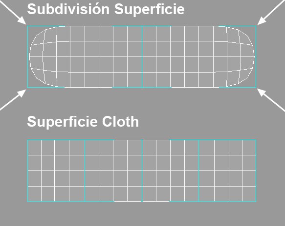 Cloth debe aplicarse a un objeto poligonal. Además, el modo en el que el objeto está subdividido tendrá mucha importancia en lo bien que cloth se animará cuando se use con Cloth.