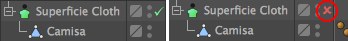 Haz click en la marca de verificación verde para desactivar el objeto Cloth.