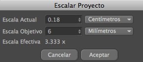 Al importar escenas antiguas (anteriores a R12), la unidad de medida usada por defecto será Centímetros (a menos que definas una unidad distinta en la opción Escala). Por supuesto, puedes cambiar la Escala del Proyecto en cualquier momento si estás trabajando con dimensiones muy grandes y muy pequeñas en una sola escena.