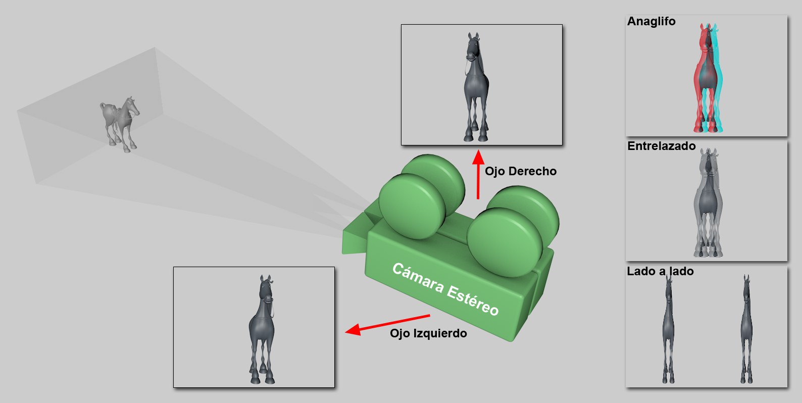 Durante años, ha habido varios intentos de mostrar imágenes, películas y vídeos en tres dimensiones. Más recientemente - principalmente como resultado de diversas películas 3D - ha habido un nuevo boom 3D. Entre las causas que han provocado esto está principalmente el avance en la tecnología que hace posible mostrar imágenes y películas 3D con colores verdaderos y sin fatiga para el ojo humano. La mayoría de las técnicas tienen en común que básicamente graban dos imágenes de la misma escena desde vistas en perspectiva ligeramente desfasadas (es decir, las perspectivas correspondientes al "ojo" izquierdo y al derecho). Estas dos imágenes deben entonces mostrarse al espectador de forma que el ojo izquierdo sólo perciba la imagen de la izquierda y el ojo derecho la imagen de la derecha (lo que se consigue mediante gafas especiales). El resto del proceso se realiza de forma más o menos automática: el cerebro combina esas dos imágenes en una única imagen.