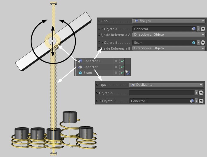 También pueden combinarse 2 Conectores, p.ej puede enlazarse un Deslizador a una Bisagra, como en el siguiente ejemplo: