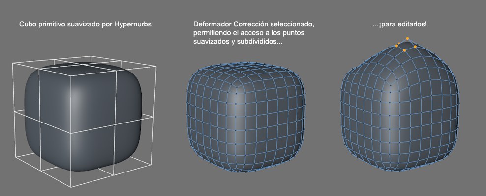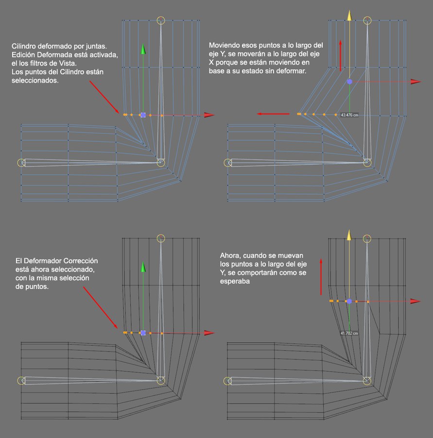 El propósito principal de este deformador es dotar al usuario de una capacidad de edición deformada real. Lo que queremos decir es que el deformador te permite acceder a los puntos en su estado deformado para poder modificar su posición a partir este estado deformado.
