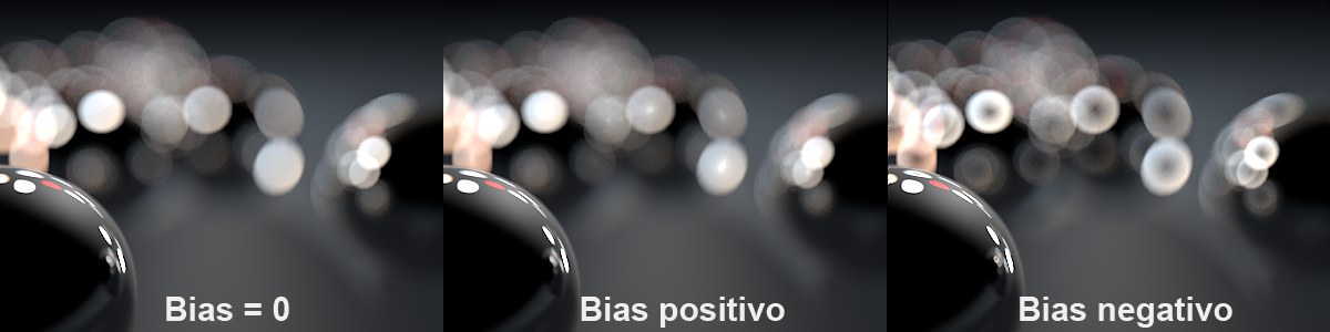 Este valor puede emplearse para concentrar el brillo de bokehs radiales en el borde (valores negativos) o en el centro (valores positivos) para evitar que tengan un aspecto homogéneo.