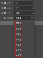 Por defecto, Cinema 4D utiliza la Rotación Euler para interpolar las rotaciones de objetos (Euler: giro-sistema de rotación disociada (HPB), interpolación Euclidiana (en ángulo recto) del espacio 3D).