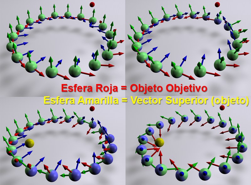 Si se activa esta opción, el eje Z del clon siempre apuntará al Objeto Objetivo; si está desactivada, la rotación en la dirección pitch no se modificará- También puede definirse un vector superior.