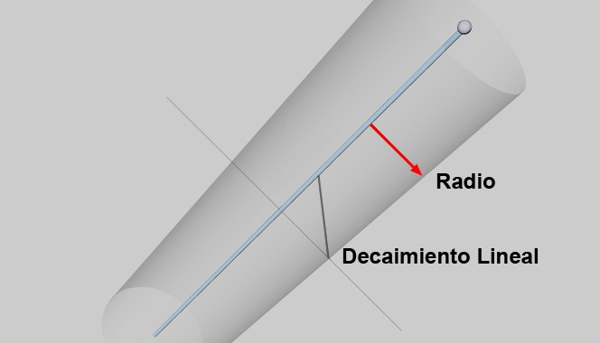Este radio representa un tubo imaginario alrededor de cada guía, conteniendo un efecto de fuerza con un decaimiento ajustable que afectará a otras guías.