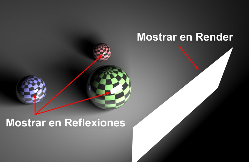 Opciones Mostrar en Render y Mostrar en Reflexiones activadas.