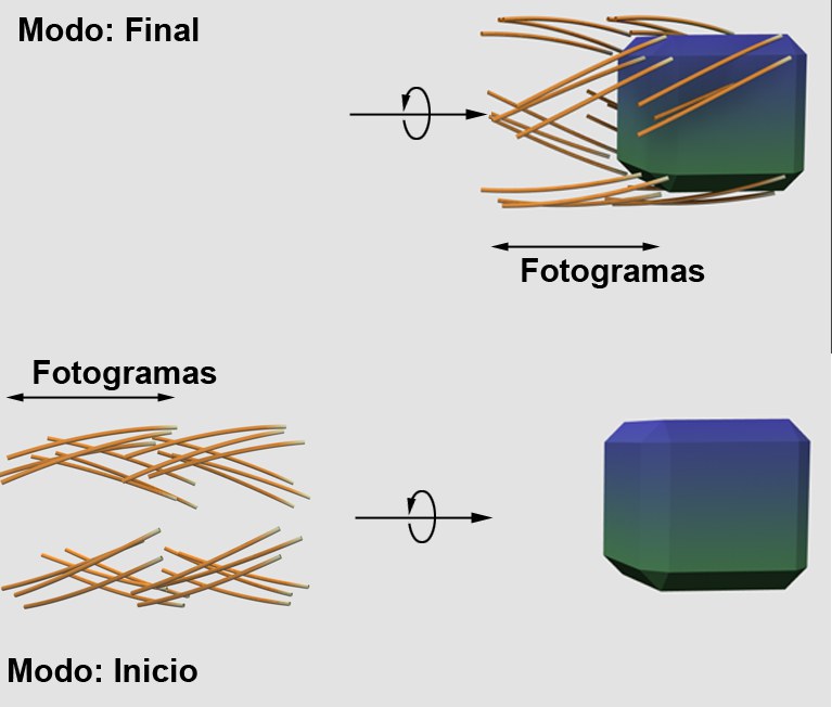 El objeto o partícula en movimiento arrastrará una cola detrás de él. La longitud de esta cola se define con el número de fotogramas establecido en la opción Cantidad de la derecha.