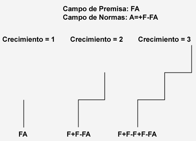 Como puedes ver, la línea de código de Normas contiene una asignación (a partir de ahora lo llamaremos Norma) en la que "F" tiene asignados varios símbolos que de hecho se insertarán (internamente) en la línea de código Premisa.