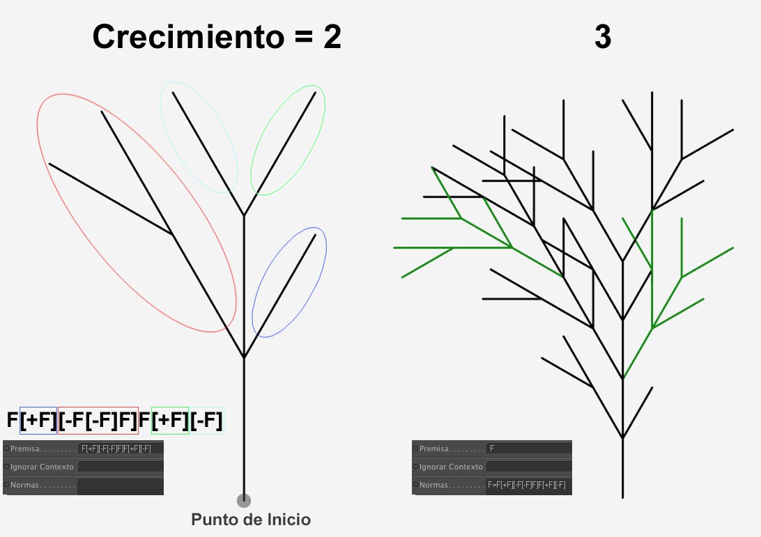 Dicho de forma sencilla, un L-System ejecuta una serie de comandos que definen cómo y donde deben crecer nuevas ramas. Es un sistema que se produce a sí mismo y que puede reemplazar ramas existentes por otras nuevas.