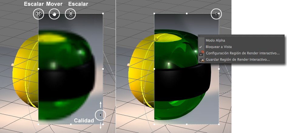 La Región de Render Interactivo (a partir de ahora nos referiremos a él como RRI) es una herramienta efectiva y práctica que ayuda a acelerar drásticamente los renders de pruebas. La RRI puede colocarse y escalarse libremente y permanecerá en un estado renderizado con la resolución que definas. La RRI se guarda automáticamente junto con la escena. La región se re-renderizará en cuanto se seleccione una nueva región, cuando se edite un objeto o cuando se realice cualquier otro cambio que afecte al estado del render.