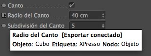 Se mostrará una Burbuja de Ayuda para los parámetros controlados por XPresso que contienen información sobre etiquetas XPresso, nodos y puertos:
