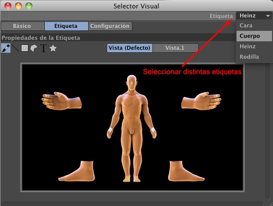 Esta etiqueta almacena la información y ajustes necesarios para trabajar con el Selector Visual (haciendo doble clic se abrirá en una ventana separada).