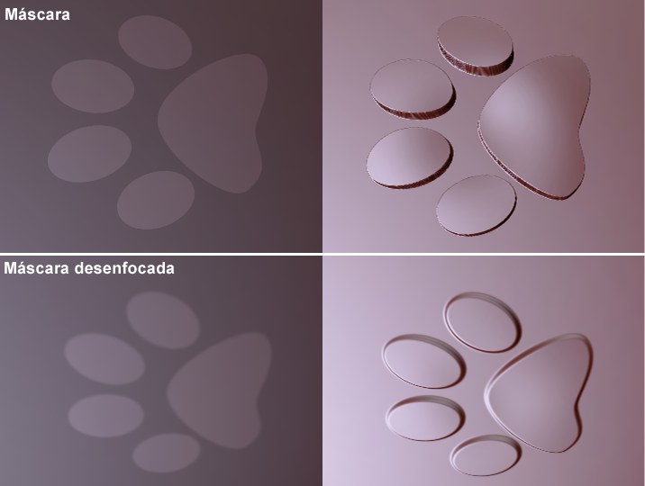 Use esta función si usted desea asignar una máscara a un objeto Escultura basado en un material. En este material, se usarán los valores de escala de grises de la textura cargada en el canal color (se pueden usar shaders también) para crear una máscara: