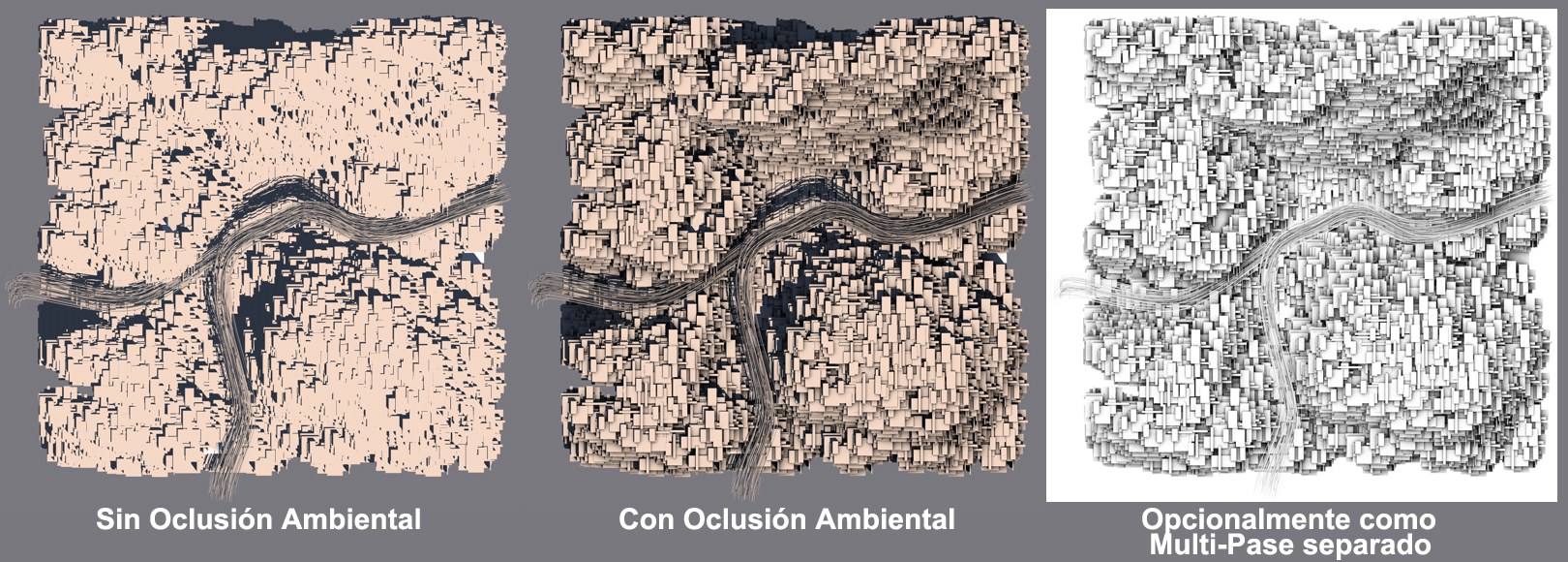 - En el Menú Configuración de Render (botón Efectos) para aplicarlo a todo el Proyecto. La OA también puede extraerse como un canal Multipase.