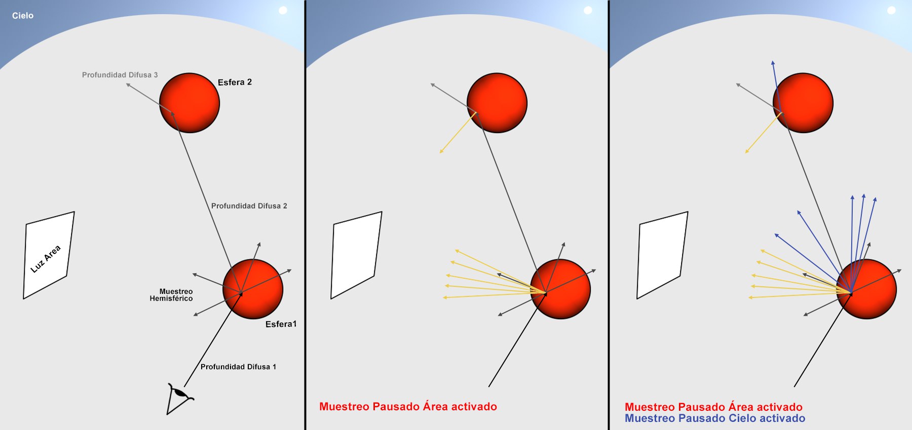 Además del muestreo hemisférico también se envían varias muestras en la dirección de los Portales IG / Luces Área (poligonales). -