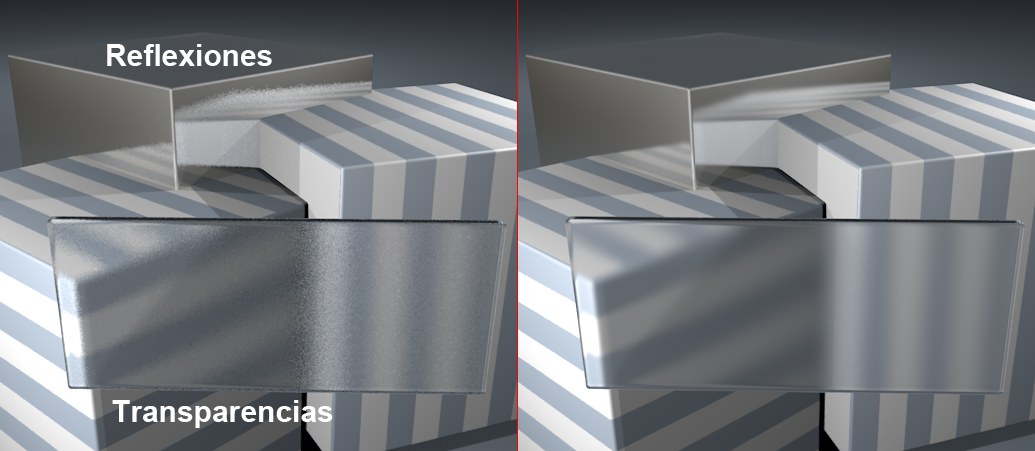 El tiempo de render es muy valioso. Por ello hay un modo Adaptativo que reconoce las zonas donde se necesitan más muestras.