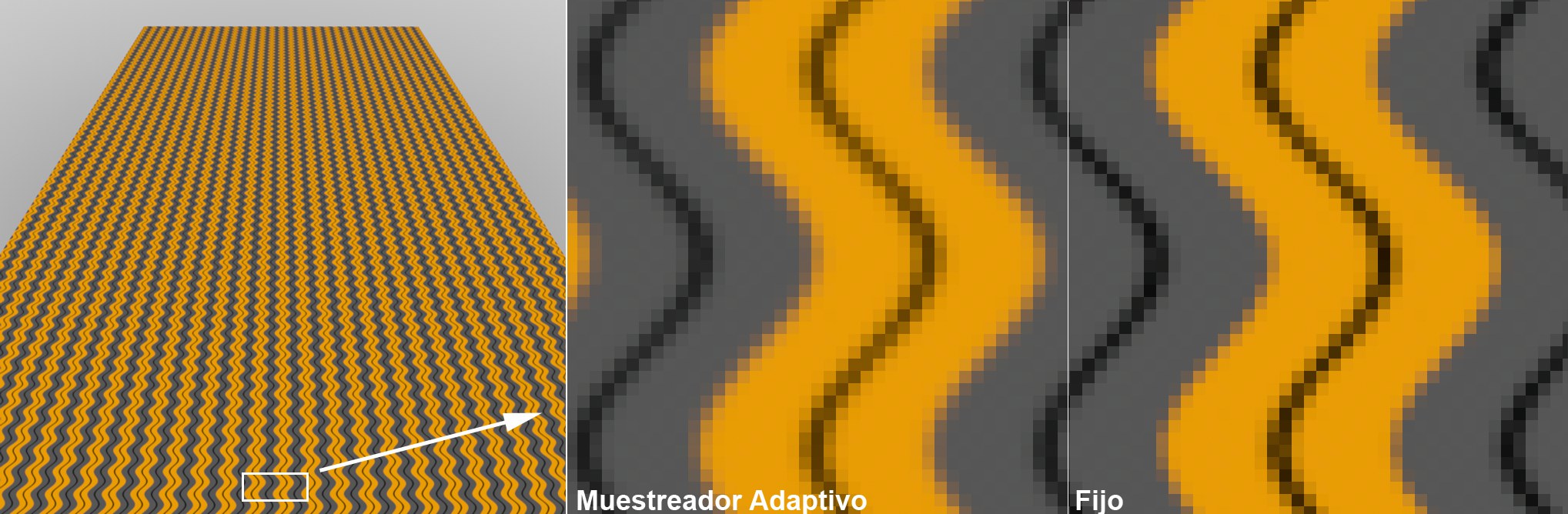 Ten en cuenta que por una cuestión de principios, el muestreador Adaptativo renderiza la imagen un poco más desenfocada que con el modo Fijo: