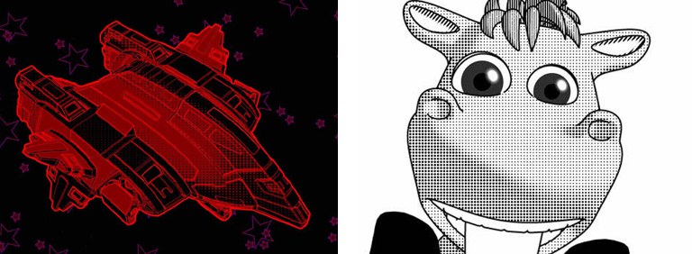 Le très populaire style en demi-ton (et plus) peut être créé en utilisant le puissant shader Trame.