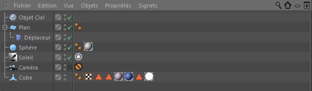 Vous utiliserez fréquemment ce Gestionnaire au cours de vos travaux dans CINEMA 4D. Il permet de modifier les caractéristiques des objets ou propriétés, et de les animer sans ouvrir la Ligne temporelle. Il permet également de créer ou modifier des éléments d’IGU, de lier l’action de certains paramètres (en créant un système de paramètres contrôleurs/contrôlés), et bien plus encore. Voir Gestionnaire d'attributs.