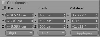 Cette commande ouvre le Gestionnaire de coordonnées s’il était fermé, ou l’affiche au premier plan s’il était masqué. Ce petit Gestionnaire est très utile pour la modification de la Position, l’Echelle et la Rotation des objets.