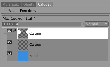 La plupart du temps, vous n'aurez pas à utiliser le Gestionnaire de calques, ses fonctions étant maintenant intégrées au Gestionnaire de matériaux. Néanmoins, le Gestionnaire de calques peut être utilisé conjointement à la Peinture par projection pour la Gestion de calques temporaires. Il est également très utile pour la Gestion de simples images bitmap 2D.