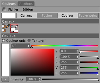Vous pouvez choisir dans ce panneau les couleurs de premier plan et d'arrière-plan pour le pinceau actif. Voir Couleur.