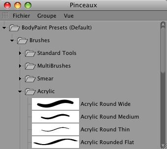 Cette commande ouvre les préréglages de Pinceau, qui permettent d'accéder aux pinceaux par défaut et à vos propres pinceaux enregistrés.