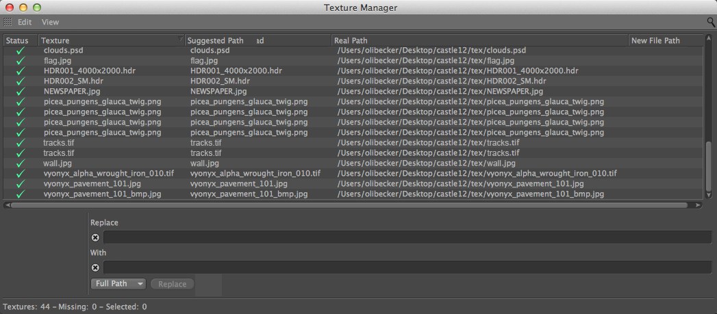 Cette commande ouvre l’Inspecteur de ressources de projet, qui peut être utilisé afin de trouver rapidement et de remplacer les matériaux manquants.