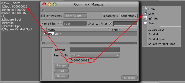 La liste de sélection et les boutons d’échange rendent également les icônes du logiciel disponibles pour la sélection. Ses ID peuvent être trouvées dans le Gestionnaire de Commandes Personnalisées. Référez-vous à l’image ci-dessous pour la syntaxe correcte :