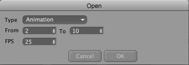 Si vous choisissez Animation dans le champ Type vous pouvez définir la cadence de défilement image qui sera appliquée à la séquence lue dans le Visualiseur.