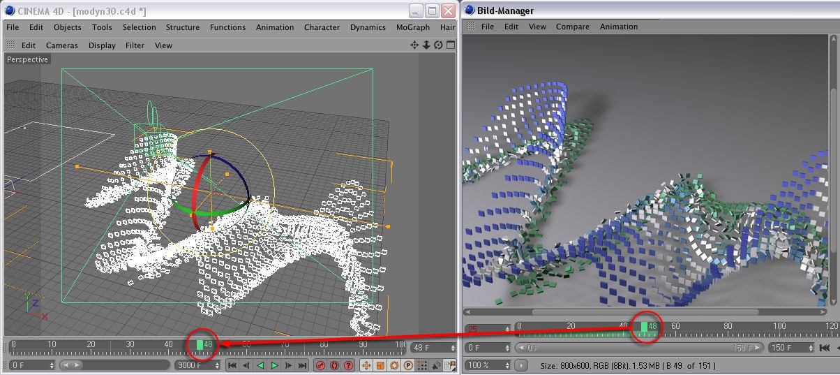 Cette option permet de relier le curseur temporel du Visualiseur à la Ligne temporelle normale de CINEMA 4D. Ainsi, quand le temps de l’animation est modifié dans le Visualiseur, il l’est également dans l’éditeur de CINEMA 4D (et vice-versa).