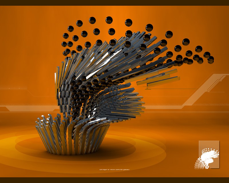 La scène suivante est composée de seulement trois cubes paramétriques clonés, intersectés et positionnés, puis colorisés et mis à l’échelle aléatoirement avec l’Effecteur Randomisation. Ajoutez un peu de profondeur de champ et un éclairage HDRI (avec le module Rendu avancé) et vous pourrez vous aussi créer l’image suivante :