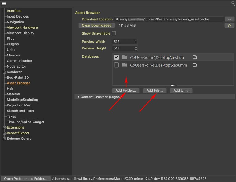 Vous pouvez rendre la base de données des ressources (décompressée dans un dossier ou zippée sous forme de fichier Zip) accessible pour Cinema 4D. Les ressources contenues dans les bases de données seront visibles immédiatement.
