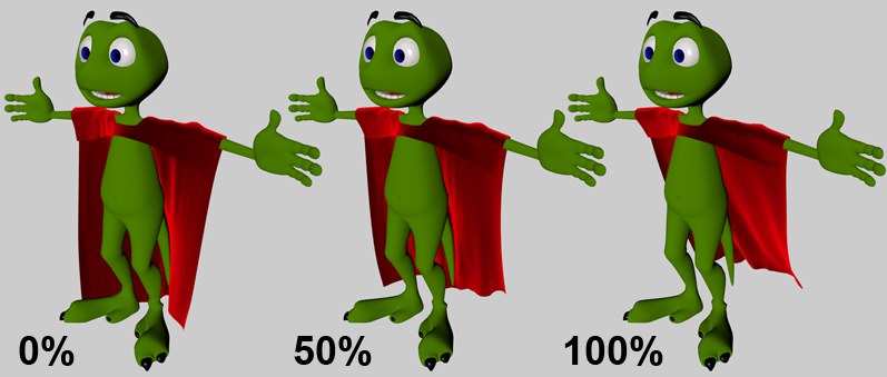 Les matériaux de Tissu les plus légers sont soulevés très facilement par le vent, alors que les matériaux plus lourds (ex. le cuir) ne sont pas soulevés aussi facilement. Avec la valeur 100%, le Tissu sera soulevé très facilement par le vent. Avec la valeur 0%, le Tissu ne sera pas soulevé par le vent.