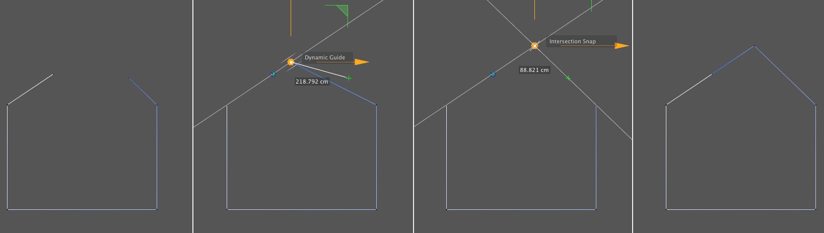 - Faites glisser le point à droite de la ligne du guide (qui est affichée comme une extension de la section spline) et magnétiser le point sur l’intersection marquée.