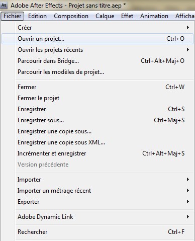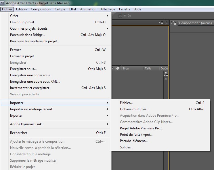 Dans After Effects, importez le fichier .aec file (Fichier / Importation / Fichier).